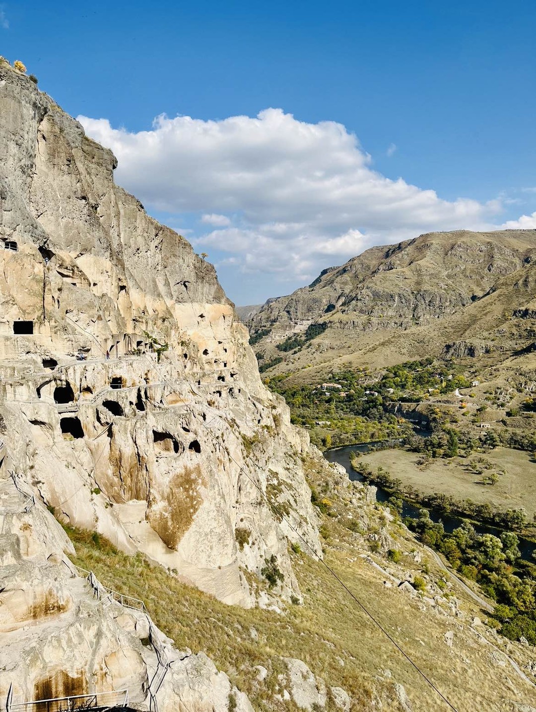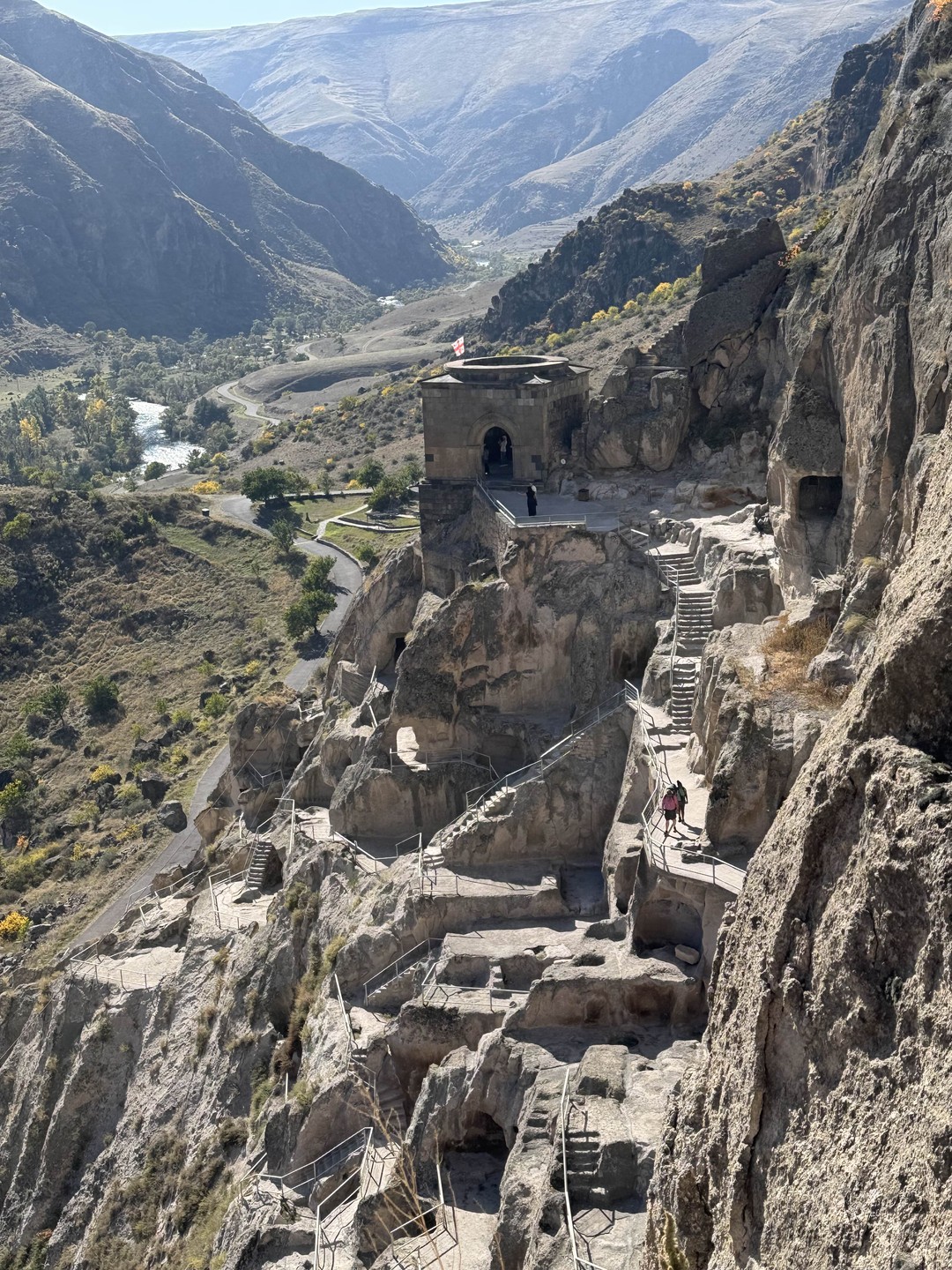 - Пещерный город Вардзия. Мы посетим высеченный в скале древний город. Его масштабы грандиозны: он насчитывает 12 этажей и более 600 пещер. Мы пройдём по оборудованным безопасным дорожкам, заглядывая в самые интересные места.