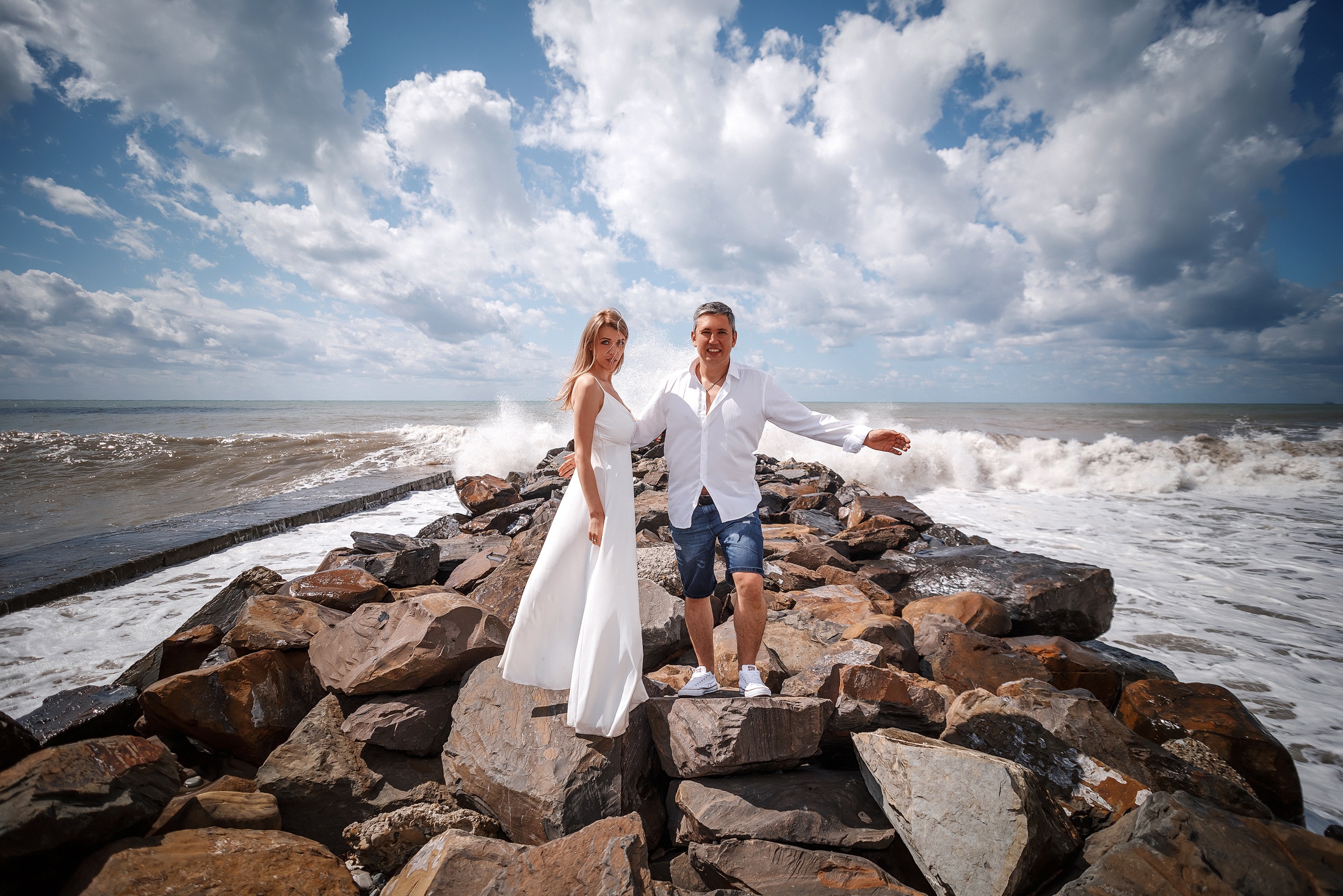 Влюблённые в волны: фотосессия на фоне океана